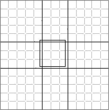 因为书法具有空间性和时间性两大特性(正是此两大特性形成了书法成为独立艺术门类),在我们解读书法黄金率的时候,必须符合汉字书写的要素——方块(空间)。亦即从方块的四边都做如上的分割,这样便形